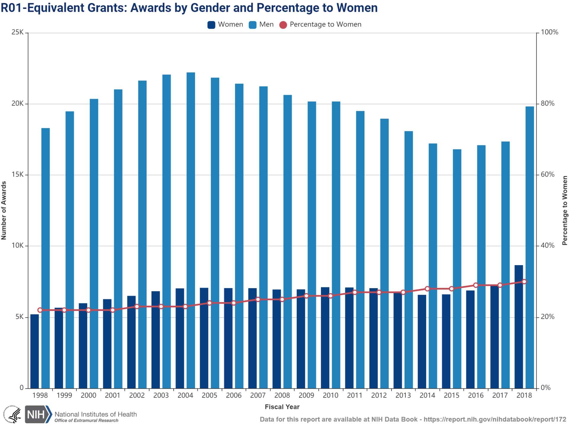 NIH’s Data Book makes it easy to see the breakdown of grant awardees by gender.